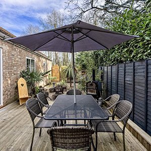 This quiet and secluded holiday cottage sleeps 6 people. It’s a wonderfully peaceful retreat along a rural quiet lane in Pentney. A hot tub, infrared sauna and music room are available should you wish, and outdoor dining with your own pizza oven is a must do!