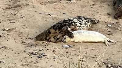 Went to see the seals on New Years Day. What a wonderful sight seeing them all, the seal pups so cute … I especially loved seeing a mother and her pup cuddling up.