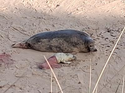 Our first visit to Horsey to see the seals and after about 15 minutes witnessed a female quite agitated and moving in a circle, this is normal before birth apparently , so we decided to stay and watch.